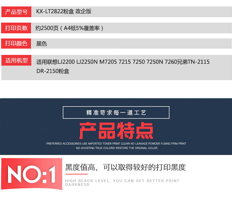 凱欣政企版 KX-LT2822 粉盒 適用聯(lián)想LJ2200 LJ2250N M7205 7215 7250 7250N 7260兄弟TN-2115 DR-2150粉盒 全國統(tǒng)一價(jià):136元