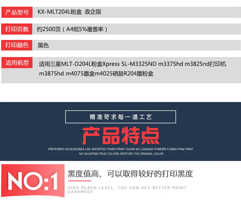 凱欣政企版 KX-MLT204L 適用三星MLT-D204L粉盒Xpress SL-M3325ND m3375hd m3825nd打印機 全國統(tǒng)一價:186元