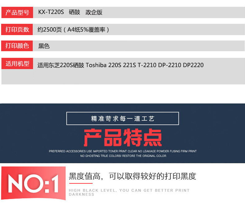 凱欣KX-T220S 適用東芝220S硒鼓 Toshiba 220S 221S打印機(jī)墨盒 易加粉T-2210墨粉盒DP-2210曬鼓DP2220碳粉盒 全國統(tǒng)一價(jià):195元