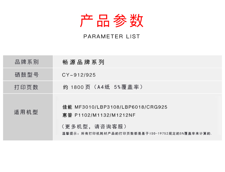 暢源CY-912/925 適用于佳能 MF3010/LBP3108/LBP6018/CRG925 惠普P1102/M1132全國統(tǒng)一價(jià):85元