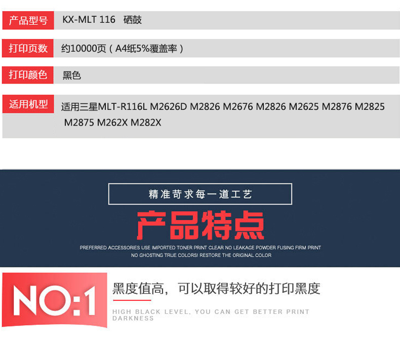 凱欣標準版 KX-MLT116粉盒 適用三星MLT-R116L硒鼓 M2626D M2826 M2676 M2826鼓架M2625 M2876 全國統(tǒng)一價:166元